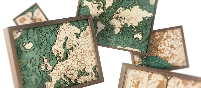 Our unique 3D wooden wall maps are brought to life by precise three-dimensional technology and patient handwork.